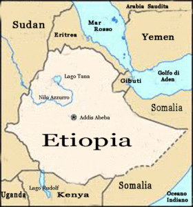 L’Etiopia, ufficialmente denominata Repubblica federale democratica dell’Etiopia, è una nazione situata nel Corno d’Africa. E’ il secondo paese più popoloso d’Africa, con i suoi 94milioni di abitanti, e non ha sbocchi sul mare. La sua capitale è Addis Abeba che conta 3milioni di abitanti. In alcune lingue, l’Etiopia è ancora indicata come “Abissinia”; nome usato dai nostri governati nel periodo delle conquiste coloniali.